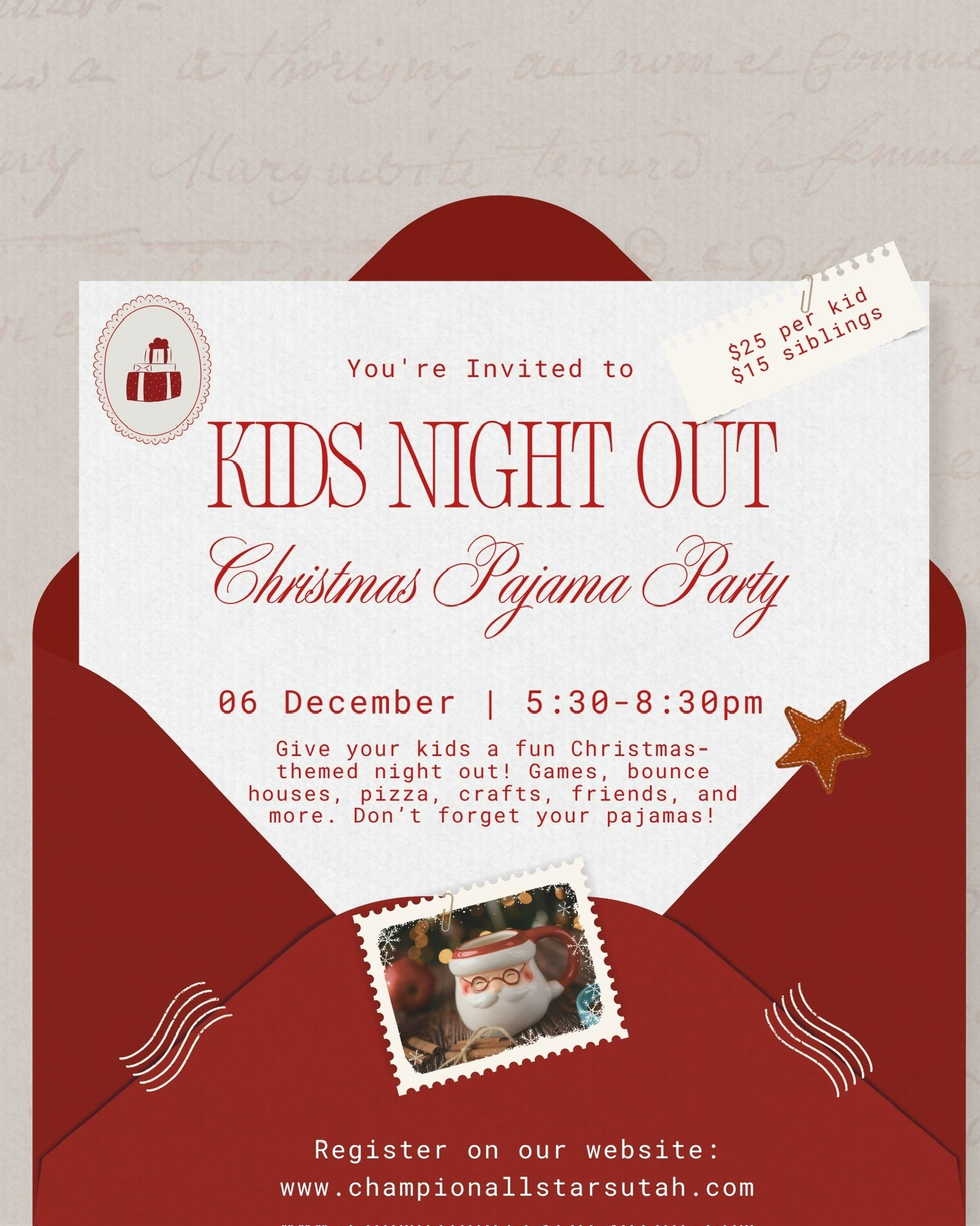 Join us for a night full of games, food, obstacle courses, prizes and more! Wear your Christmas jammies and come celebrate with us!